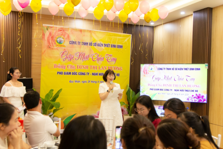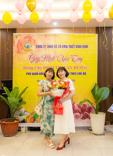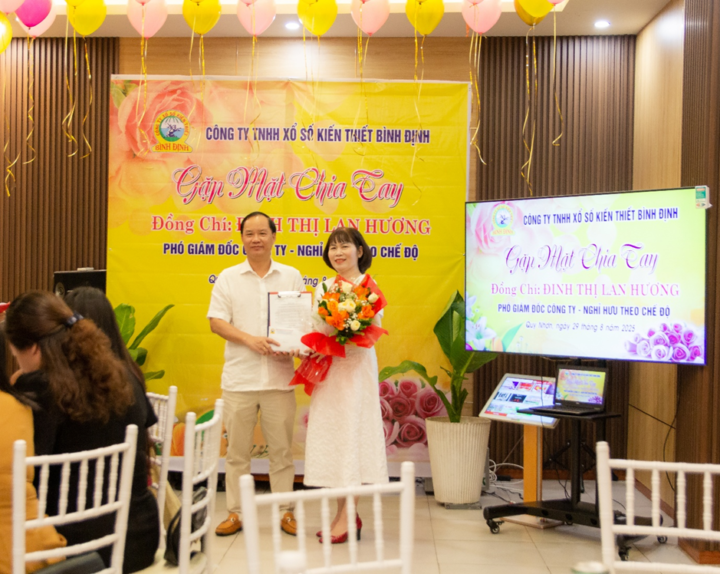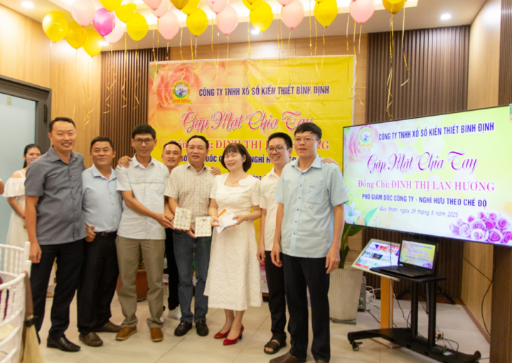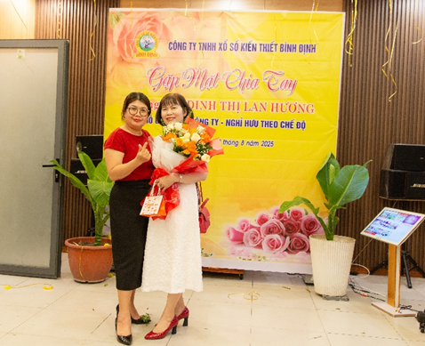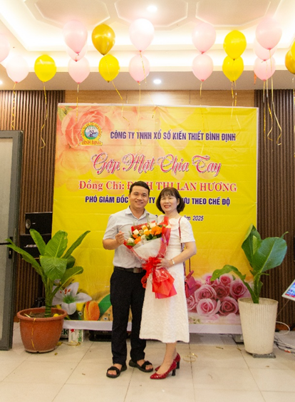 Sau hơn 36 năm gắn bó, cống hiến cho sự phát triển của Công ty TNHH Xổ số kiến thiết Bình Định, đồng chí Đinh Thị Lan Hương – Phó Giám đốc Công ty đã chính thức nghỉ hưu theo chế độ từ ngày 01/9/2025. Ngày 29/8/2025, Công ty TNHH Xổ số kiến thiết Bình Định đã tổ chức Lễ trao Quyết định nghỉ hưu theo chế độ và buổi tiệc gặp mặt chia tay đồng chí Đinh Thị Lan Hương – Phó Giám đốc Công ty.