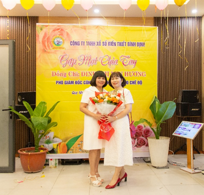 Buổi tiệc khép lại trong không khí đầm ấm, thân tình. Những bó hoa tươi thắm, những phần quà kèm theo những lời chúc mừng và cả những cái bắt tay nồng hậu đã thể hiện sự trân trọng, tình cảm gắn bó giữa đồng chí Hương với đại gia đình Công ty TNHH Xổ số kiến thiết Bình Định.